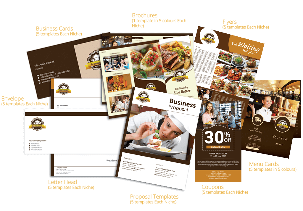 200+ Editable Brochures, Business Cards, Coupons, Proposal Templates etc. in Five Super Hot Niches